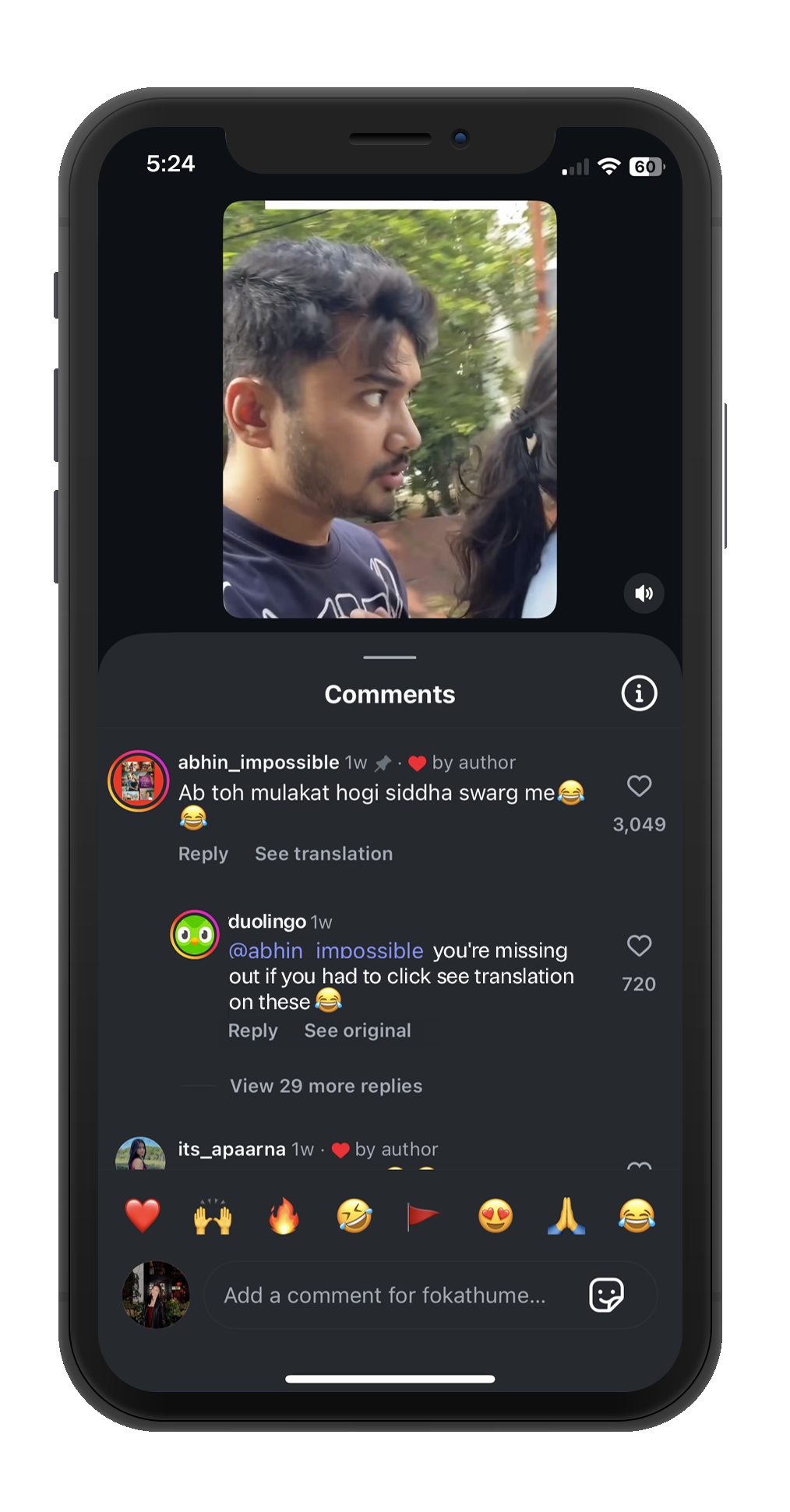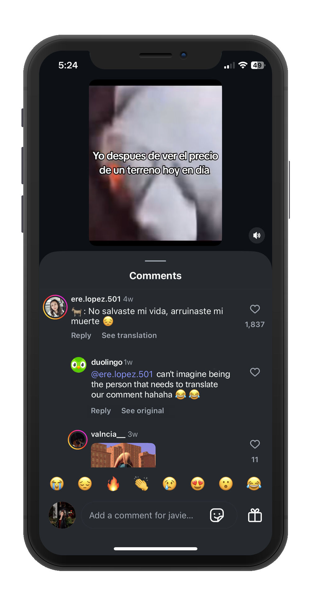 They run straight to the comments to see if they can get more context or entertainment and see a comment from Duolingo in that language.