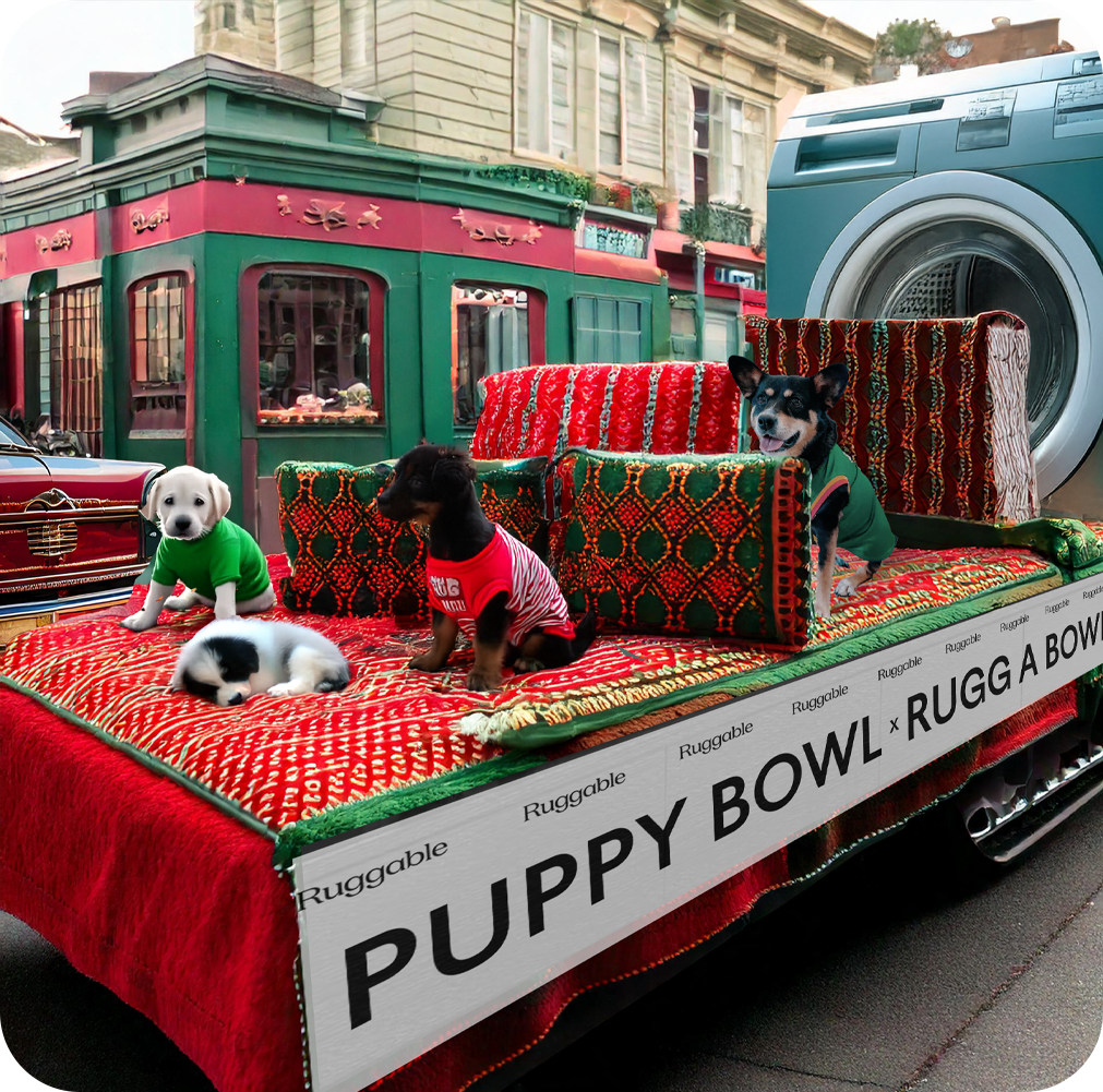 On Game Day, Ruggable will partner with the Puppy Bowl to provide a custom, washable playing field and an interactive experience where people can throw food on rugs to their pets for a chance to win prizes.